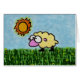 Hübsche, kleine, gelbe Schafe mit rosa Gesichtsausdruck, die an einem hellen und sonnigen Tag in einem Lüsternfeld stehend werden. Originelle Cartoon-Kunst von Taylor Addams. Wir werden es Liebe!