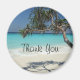 Ein Dankeschön Magnet mit einem schönen, sonnigen Foto. Türkisblaues, tropisches Meer mit weißem Sand. Ein Solo-Tropenbaum lädt zum Entspannen und Genießen dieses landschaftlichen, idyllischen Ortes ein.