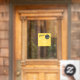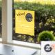 Ein auffälliges und sonniges gelbes Design für kleine Unternehmen. Dieses Fenster- oder Türdekal begrüßt Kunden und Kunden freundlich, mit einem Firmenlogo für Platzhalter und wichtigen Informationen über die Öffnungszeiten des Unternehmens.