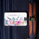 Stilvoll bedrucktes Gepäckanhänger. Dieses mädchenhafte Design zeichnet sich durch eine hübsche böhmische Aquarellblume in Rosa-, Blau- und Lavendeltönen lila aus. Personalisieren Sie es mit Ihrem Namen Monogramm oder anderen benutzerdefinierten Text. Füge deine Kontaktinformationen auf der Rückseite hinzu, falls dein Gepäck während der Reise verloren geht. Verwenden Sie die Designtools, um Schriftart und Farben auszuwählen oder Ihre eigenen Fotos hochzuladen, um ein einzigartiges mit Monogramm Gepäckanhänger zu erstellen.