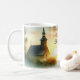 Sunrise Church with Birds in Misty Meadow Text Kaffeetasse