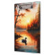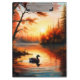 Das ist ein Design einer Ente auf einem See bei Sonnenaufgang.