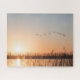 Foto des Sonnenaufgangs und eine Gruppe von fliegenden Vögeln in Mecklenburg-Vorpommern. Standort: Naturschutzgebiet Anklamer Stadtbruch.