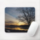 Foto eines Sonnenaufgangs an einem See. Im Vordergrund steht ein großer Eichenbaum silhouettiert. Auf einem hochwertigen Mousepad angezeigt.