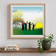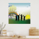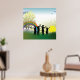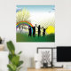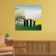 Ein landschaftliche von Kindern, die im vollen Sonnenaufgang und im Regenbogen stehend sind. Dieses Design sieht wirklich effektiv aus auf diesem Poster
