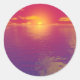 Ein Sonnenaufgang oder Sonnenuntergang über einem endlosen Ozean. Ein 3D-CGI-Design.