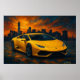 A Lamborghini surges through the golden haze, its silhouette slicing the horizon like a blade of ambition. This artwork captures the fleeting moment where speed meets serenity—where the apex of the curve aligns with the last kiss of sunlight. Metallic reflections dance across the bodywork, echoing the pulse of a city that never truly sleeps. Sunset Apex is a tribute to precision, power, and the poetry of motion.