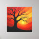 Das ist ein Leinwand eines nackten Baumes mit einer Sonnenuntergangsszene.