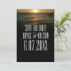 Die Sonnenuntergang Hochzeit am Strand bietet einen goldenen Sonnenuntergang über dem Strand bei Sonnenuntergang. Gold und schwarz Motiv mit fett weißem Text. Passen Sie Gegenstände auf dieser Karte an, wie Sie es für richtig halten.