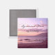 Ein eleganter rosa und lila Sonnenuntergang, der an einem Strand von Hawaii aufgenommen wurde. Sanfte Wellen und feiner Sand unterstreichen das Bild. Passen Sie Ihre Wünsche mit Namen und Hochzeitstermin an.