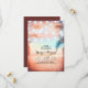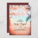 Absolut romantische, elegante und einzigartige Strandhochzeit Save the Date mit einer aufhängenden Lichterkette auf den Palmen.