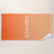 VIVIDLUXE Moderner Lässiger Stil. Trage den Sonnenuntergang mit dir zum Ufer! Dieses Strandtuch zeichnet sich durch eine glatte Farbskala von tieforange bis sanft beige aus und spiegelt das warme Glühen eines perfekten Abends am Strand wider. Die kühne, moderne 'BEACH VIBES' Typografie ist eine stilvolle Aussage. Dieses große, absorbierende Handtuch ist Ihr unverzichtbarer Begleiter für sonnige Tage am Strand oder am Pool.