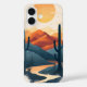 Folgen Sie einem kurvenreichen Weg durch eine leuchtende Schlucht, die von einer tiefen Sonne erhellt wird und von sanften Wüsten-Silhouetten umgeben ist.