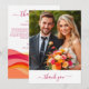 Thank your guests in vibrant, modern style with this Sunset Color Waves wedding thank you card, designed to feature your favorite wedding photo, a personalized message, and a custom website link so guests can relive the magic of your special day.