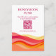 Teilen Sie Ihre Geschenk- und Hochzeitsreise-Details mit Leichtigkeit und Stil mithilfe dieser doppelseitigen Registrierungskarte im Sunset Color Waves-Design, die perfekt auf Ihre Einladung, Ihre Antwortkarte und Ihre Detailkarte im gleichen Design abgestimmt ist. Eine Seite enthält einen QR-Code, der zu Ihrer Geschenk-Registrierung führt, während die andere Seite einen QR-Code für Ihren Hochzeitsreise-Fonds enthält, wodurch es für Ihre Gäste einfach ist, digital darauf zuzugreifen und einen Beitrag zu leisten.