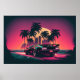 "Sunset Cruiser: Journey to the Future" zeigt ein schlankes und stilvolles Auto, das in Richtung Horizont fährt, die lebhaften Farben eines feurigen Sonnenuntergangs, der den Himmel erhellt. Das Kunstwerk erfasst das nostalgische Gefühl des 80ers und bietet zugleich einen Einblick in eine futuristische Welt, in der die Möglichkeiten unendlich erscheinen. Es ist eine perfekte Mischung aus Vergangenheit und Zukunft, die ein Gefühl von Abenteuer und Aufregung hervorruft, das den Zuschauern verlasse, sich nach mehr sehnen.