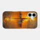 This luminous painting depicts a Venetian island bathed in glowing sunset light, where golden yellow and radiant orange dominate the sky and reflect across rippling water. A tall bell tower in brick red and pale stone stands beside domed architecture in warm beige and soft cream, silhouetted against a brilliant amber sun. The water shimmers with strokes of copper, teal, and deep indigo, layered in thick, expressive brushwork. Birds in dark charcoal glide across the glowing atmosphere. The art style resembles impressionistic oil painting, characterized by visible texture, dynamic brushstrokes, and saturated color blending that captures light, movement, and romantic atmosphere.