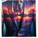 Dieser Duschvorhang hat einen Sonnenuntergang darauf.
