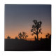 In der Mojave-Wüste liegt Joshua Trees an der Skyline. Mit ihren aufgewachsenen Armen empfangen sie die Nacht auf dem Wüstenboden.