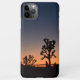 In der Mojave-Wüste liegt Joshua Trees an der Skyline. Mit ihren aufgewachsenen Armen empfangen sie die Nacht auf dem Wüstenboden.