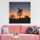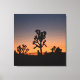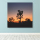 In der Mojave-Wüste liegt Joshua Trees an der Skyline. Mit ihren aufgewachsenen Armen empfangen sie die Nacht auf dem Wüstenboden.