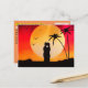 Ein Paar teilt sich einen romantischen Kuss, wie die Sonne Sets auf einem warmen, tropischen Strand.