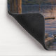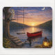 Bring a calm and dreamy mood to your workspace with this scenic mouse pad featuring a glowing sunset over a peaceful lake. A wise owl perches in a tree above a hanging swing, while a red canoe, a duck on the water, stone steps, and a lantern create a cozy storybook setting. The rich blue, gold, and amber tones blend twilight beauty with rustic lakeside charm for a warm and relaxing design. Perfect for anyone who loves nature scenes, woodland animals, tranquil water views, and magical evening landscapes.