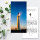 Dieses Lesezeichen hat einen Leuchtturm auf der Vorderseite und ein Gebet auf der Rückseite. Sie können Ihr eigenes Foto hochladen und den Vers auf der Rückseite zu einem Gebet oder Gedicht Ihrer Wahl ändern.