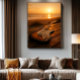 A guitar rests by the shore as the sunset paints the horizon in warm golden tones. The perfect blend of music and nature, delivering calm, inspiration, and the feeling that every chord resonates with the fading light of the evening.