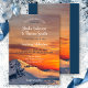 Eine Wintereinladung mit einer romantischen Winterszene mit einem Sonnenuntergang auf einer schneebedeckten Bergwelt.
