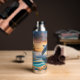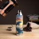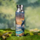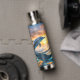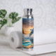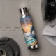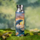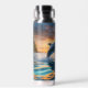 Für diejenigen, die das Meer und all seine Schönheit Liebe, diese Getränke-Flasche zeigt ein atemberaubendes Bild von einem blauen Delphin springen über das Wasser. Ein blendender orangefarbener und goldener Sonnenuntergang ist am Horizont. Einzigartig schön!