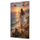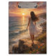 Add a touch of beauty and creativity to your workspace with this stunning Sunset Ocean Oil Painting Clipboard. Featuring a breathtaking scene of a glowing sunset over the ocean, this design captures a peaceful moment where a girl stands by the shore, enjoying the calm and dreamy atmosphere.