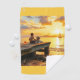 Sunset on the dock on the lake. This boy relaxes on the dock with his dog while they watch the sunset over the lake. A sailboat sails away in the distance.
