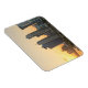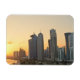 Der rechteckige Foto-Magnet mit den Wolkenkratzern in der Skyline des kommerziellen Zentrums von Doha, der Hauptstadt des arabischen Golflandes Katar bei Sonnenuntergang.