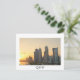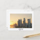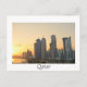 Postkarte der Wolkenkratzer in der Skyline des kommerziellen Zentrums von Doha, die Hauptstadt des arabischen Golf-Land Katar bei Sonnenuntergang mit einer weißen Grenze und der Text: "Katar".