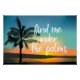Finde mich unter den Palmen! Ein schöner Sonnenuntergang auf einem hawaiianischen Strand im Mittelpunkt dieses Designs. Die Stimmung bringt die Botschaft der Entspannung und den Aloha-Geist in Ihre Wohngestaltung. Das Design ist in Blau gehalten, das in Gold, Orange und Korallen des Sonnenuntergangs über dem Strand harmoniert.