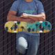 Gönnen Sie sich einen Spaziergang durch die Straßen mit dem Wesen Südkaliforniens! Die "Sunset Palms Cruiser Board", ein hochwertiges Skateboard, das den Geist der berühmten Palmen von SoCal mit einem lebendigen Sonnenuntergang am Strand verkörpert. Das einzigartige Kunstwerk auf diesem Brett besticht durch eine dynamische Palette an warmen Gelbtönen und cooler Blues, die an einen Tag erinnert, der in einen ruhigen Abend am Meer übergeht. Die energetischen Striche und das abstrakte Design vermitteln das entspannte und dennoch abenteuerliche Ambiente der kalifornischen Küstenkultur. Dieses Skateboard ist perfekt, um die Promenade entlang zu gehen oder den Boulevard zu erklimmen. Es ist mehr als nur eine Fahrt; es ist ein Kunstwerk, das den Strand zu Ihrer Reise bringt.
