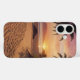Ein traumhafter tropischer Sonnenuntergang mit Palmen und sanften Wellen auf dem goldenen Sand. Ideal für die Sommertelefonie.