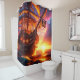 Dieser Duschvorhang hat ein großes Piratenschiff bei Sonnenuntergang, das darauf abgebildet ist.
