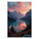 Majestätische Berge erheben sich gegen einen rosa und orangefarbenen Himmel, dessen Farben perfekt auf der kristallklaren Oberfläche des Sees spiegeln. Lebhafte Blume stehen im Vordergrund, während ein leises Boot auf dem ruhigen Wasser schwimmt. Diese Szene vereint die Ruhe der Natur in der Abenddämmerung und vereint in einem Moment Grandeur und Delikatesse - perfekt, um Frieden zu schaffen und die Schönheit der wilden Welt zu erleben.