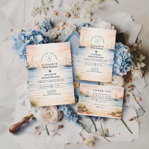 Sunset Sailboat Seaside Wedding Einladung