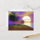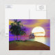 Postcard mit meinem Kunstwerk einer tropischen Insel und Wasserszene mit einem Segelboot und untergehende Sonne.