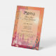 Sunset Serenade Pedestal Wedding Menu - Voll individualisierbares Design Fügen Sie Ihren Empfang-Tischen eine Touch strahlenden Charmes hinzu. Dieses Hochzeitsmenü im Podest der Sunset Serenade Kollektion. Das Design verbindet kulturelle Wärme mit romantischem Flair und zeichnet sich durch einen strahlenden Aquarellenhimmel in goldgelben und sanften Rose aus. Das Set hinter einer silhouettierten Skyline von Kuppeln und Türmen, umgeben von üppigen Blumenbildern in Korallen, Creme und aquamarin. 💫 Elevated Elegance, Personalisiert Presentation: Das Menü wird auf einem freistehenden Podestschild präsentiert - perfekt für Büffets, Platzierungen oder Ausstellungsstände - und bietet sowohl Schönheit als auch Sichtbarkeit. Der gesamte Text ist vollständig anpassbar, inklusive der Namen der Ehepaare, des Hochzeitstages und der Menüpunkte von Vorspeisen bis zu Desserts, sodass es jede Art von Küche oder Feier Anzug. 🌿 Form Meets Funktion: Der reichhaltige, sonnengewaschene Hintergrund und die blumengeschmückte Grenze ergänzen die Erholung der Sunset Serenade Suite. Die gepflegte, moderne Typografie sorgt dafür, dass Ihr kulinarisches Angebot leicht zu lesen ist. Egal ob Sie ein festliches Abendessen oder ein festliches Fusionsmessen servieren, diese Speisekarte bietet Ihnen eine Touch des Geschichtenerzählens. Dieses Menü-Zeichen ist ein schöner Sake für Ihren Hochzeitstag und trägt zur Krawatte Ihrer Sehkraft bei - visuell atemberaubend, kulturell inspiriert und einzigartig.