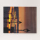 Hafenleuchten, Das Licht des Sonnenuntergangs, das die Straßenlampen beleuchtet.