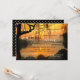 Eine festliche Brautduscheinladung mit Blick auf See oder Wasserfront bei Sonnenuntergang mit funkelnden Saitenlichtern.