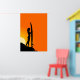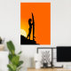 Ein cooles Design einer Silhouette eines Surfer-Mädchens, das ihr Surfbrett gegen einen hellorangen Sonnenuntergang hält. Dieser Strand, Sommer inspiriertes Design ist hell und lebendig und für Liebhaber des Surfens und des Strandlebens in der ganzen Welt.