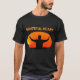 Bold black silhouette with raised arms set against a warm orange sunset oval; a motivational, fitness-inspired motif perfect for activewear and travel apparel.