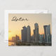 Postkarte der Wolkenkratzer im kommerziellen Zentrum von Doha, die Hauptstadt des arabischen Golf-Land Katar bei Sonnenuntergang mit dem Test: 'Katar'.