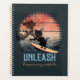 Sunset Wave-Riding Cat Planner: Eine schwarze Katze surft auf einer Welle, die in Rosa- und Orangetönen Sonnenuntergang macht und eine skurrile und surreale Szene schafft.