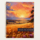 Dieser Planer zeigt eine lebendige Abbildung eines Sonnenuntergangs über einem goldenen Weizenfeld und violetten Blumen. Das Design ist auf der Vorder- und Rückseite gleich. Personalisieren Sie die Front mit dem laufenden Jahr.